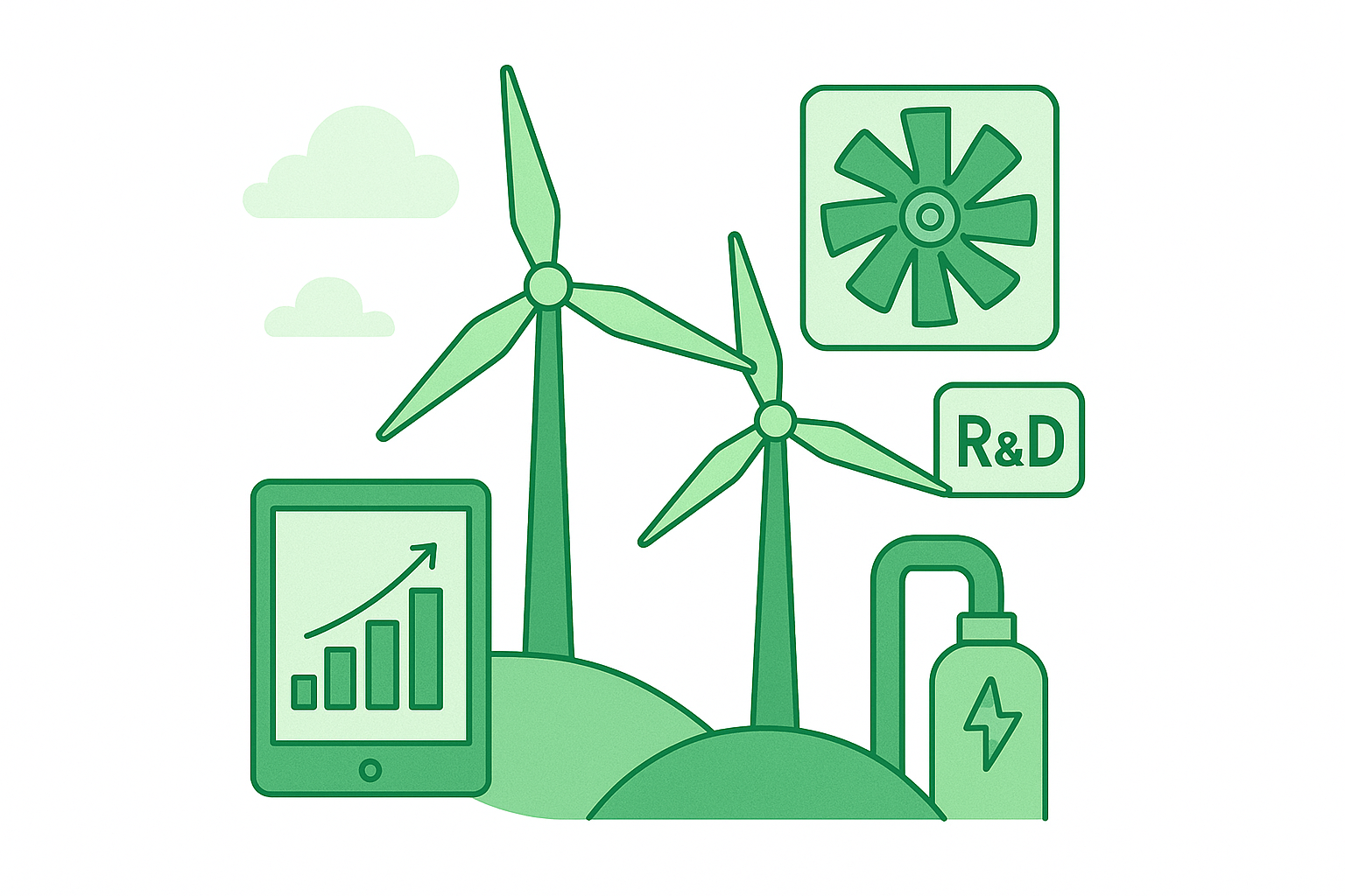 - Energy – Innovative wind turbines, expansion turbine R&D in renewable energy.